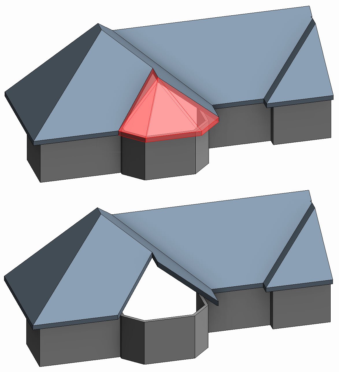 For this we have to change the height of the right eave using offset from roof base at a negative value.